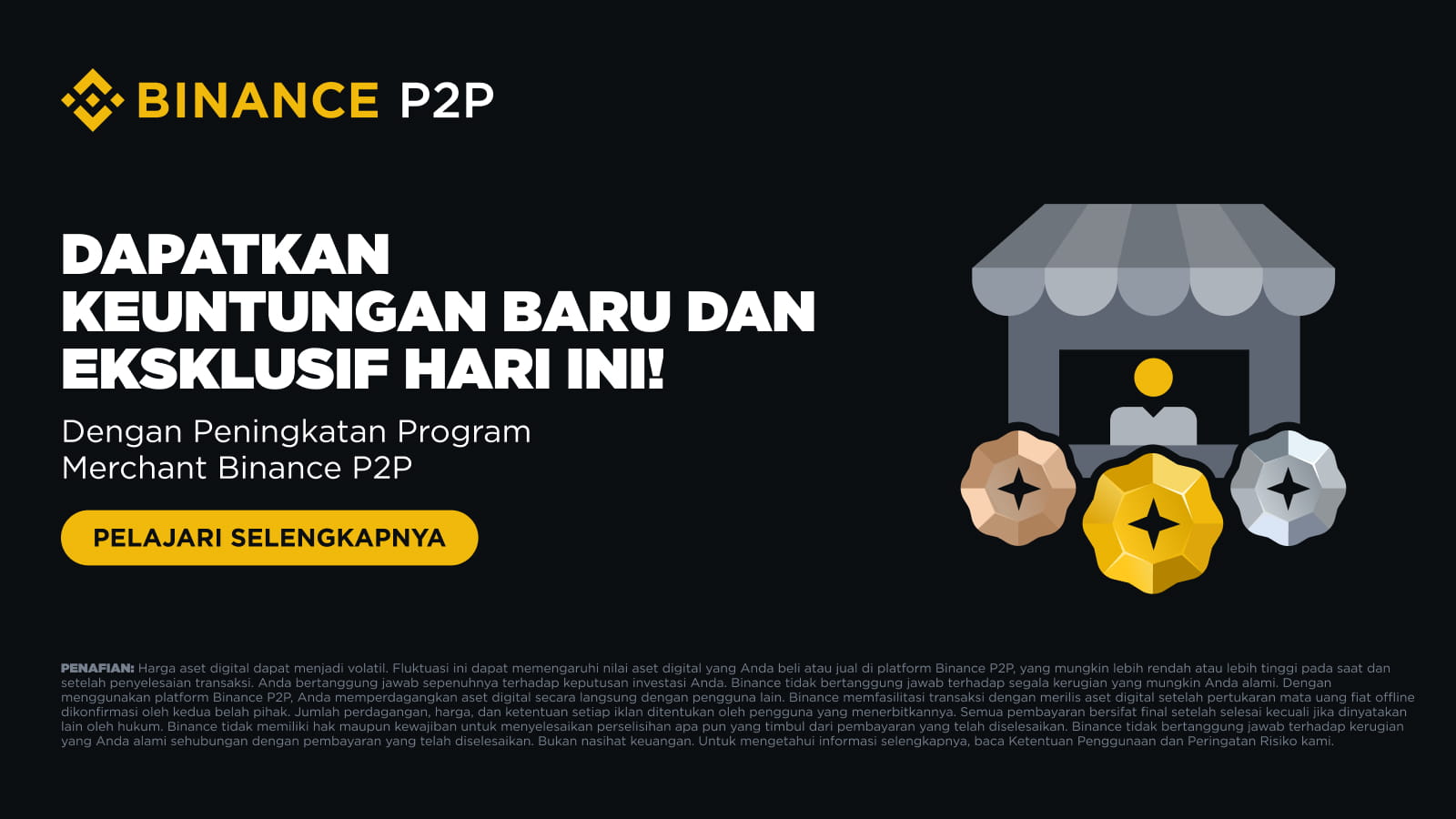 Peringatan Risiko: Harga aset digital dapat menjadi volatil. Fluktuasi ini dapat memengaruhi nilai aset digital yang Anda beli atau jual di platform Binance P2P yang mungkin lebih rendah atau lebih tinggi pada saat dan setelah penyelesaian transaksi. Anda bertanggung jawab sepenuhnya terhadap keputusan investasi Anda dan Binance tidak bertanggung jawab terhadap kerugian apa pun yang mungkin Anda alami. Dengan menggunakan platform Binance P2P, Anda memperdagangkan aset digital secara langsung dengan pengguna lain. Binance memfasilitasi transaksi dengan merilis aset digital setelah pertukaran mata uang fiat offline dikonfirmasi oleh kedua belah pihak. Jumlah perdagangan, harga, dan ketentuan setiap iklan ditentukan oleh pengguna yang menerbitkannya. Semua pembayaran bersifat final setelah selesai, kecuali diwajibkan lain oleh hukum. Binance tidak memiliki hak ataupun kewajiban untuk menyelesaikan perselisihan apa pun yang timbul dari pembayaran yang telah selesai. Binance tidak bertanggung jawab terhadap kerugian yang Anda alami sehubungan dengan pembayaran yang telah selesai. Bukan nasihat keuangan. Untuk mengetahui informasi selengkapnya, baca Ketentuan Penggunaan dan Peringatan Risiko kami.