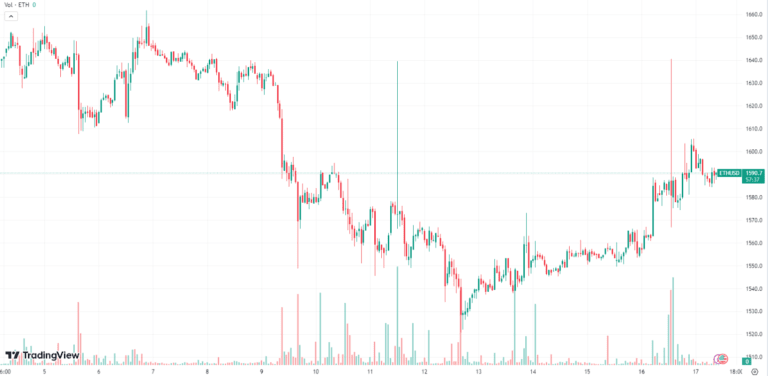 Al momento, Ethereum viene scambiato a circa $ 1.500. Attualmente è al di sotto sia della sua media mobile a breve termine (circa $ 1.576) che della media mobile a lungo termine (circa $ 1.793), il che suggerisce una possibile pressione ribassista a breve termine.