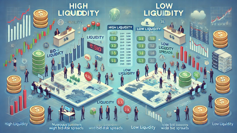 In termini fondamentali, la liquidità può essere definita come la capacità del mercato di facilitare l'acquisto e la vendita a prezzi stabili. I mercati liquidi hanno un volume di scambi elevato, molti acquirenti e venditori e bassi spread bid-ask. Lo spread bid-ask stesso è la differenza tra il prezzo bid più alto presentato dall'acquirente (bid) e il prezzo richiesto più basso richiesto dal venditore (ask). Quanto minore è questa differenza, tanto più liquido è il mercato.