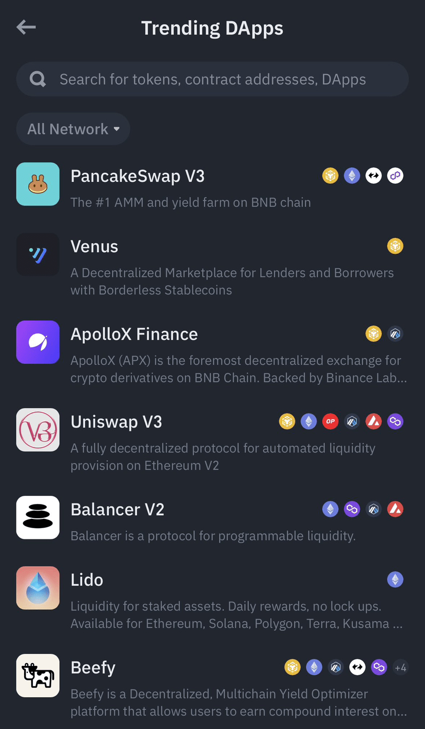 Vuoi scambiare le tue monete ALT? La funzionalità di scambio è rapida ed efficiente. Nella scheda di scoperta, troverai un elenco delle migliori DApp tra cui #PancakeSwap e #uniswap , rendendo estremamente conveniente lo scambio di token #meme e altri elencati su questi DEX.