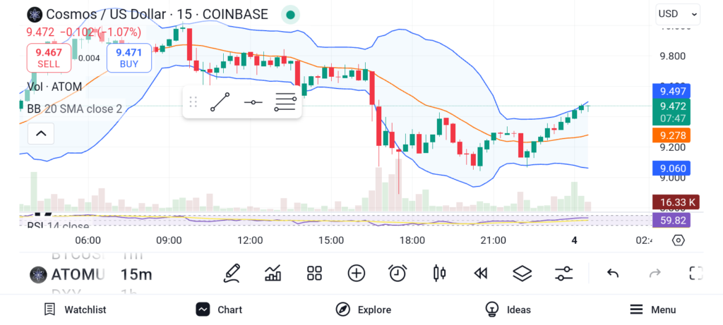 Nell'ultimo mese, Cosmos è salito di oltre il 100%. Il prezzo attuale di scambio del token è compreso tra 6,43 e 10,32 dollari, con indicatori che mostrano un ulteriore spazio per la crescita. Le SMA a 10 giorni e a 100 giorni si stanno avvicinando intorno agli 8,50 dollari, indicando un forte momentum. L'RSI è a 58, e Cosmos rimane in una posizione favorevole alla crescita. Un breakout sopra il livello di resistenza di 11,89 dollari potrebbe spingere ATOM a 15,78 dollari, segnando un enorme potenziale di guadagno.