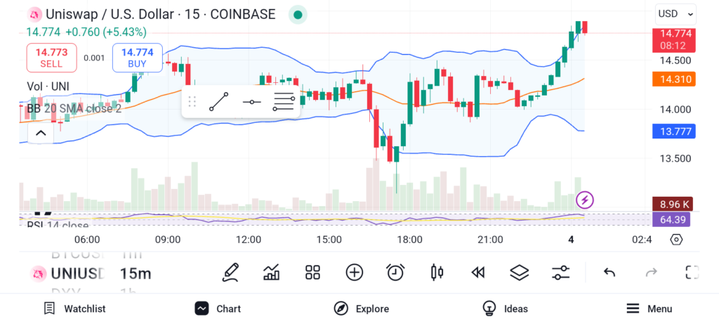 Uniswap è aumentato del 73,66% in appena un mese e non mostra segni di rallentamento. Il token viene scambiato tra 9,14 e 12,01 dollari, consolidandosi prima di un possibile breakout. Le medie mobili semplici a 10 giorni e a 100 giorni indicano una forte tendenza al rialzo, mentre l'RSI a 58 suggerisce che c'è ulteriore spazio per la crescita. Se UNI supera i 13 dollari, il prossimo livello di resistenza a 16 dollari potrebbe portare a un aumento di oltre il 30%.