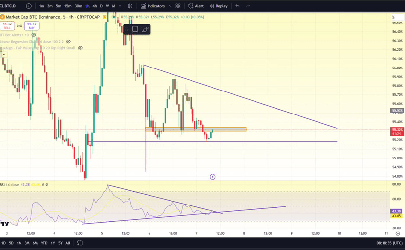 BTC.d sembra un po' rialzista quindi rimani allerta.