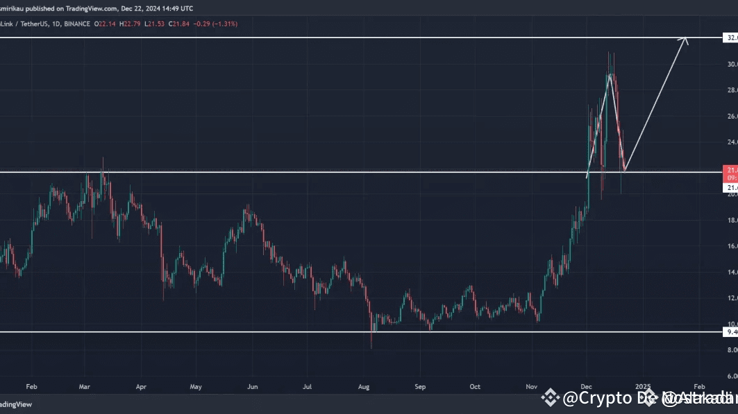 Secondo l’analisi tecnica la catena degli anelli si trova a un punto di svolta critico. Il popolare altcoin è salito a 32 dollari a novembre, ma è sceso da quel livello e attualmente viene scambiato intorno ai 21 dollari. Se questo livello di supporto viene mantenuto, potremmo vedere il prezzo spostarsi nuovamente verso i 32 dollari. Tuttavia, se#LINKnon riesce a mantenere questo livello, potrebbe riscontrare livelli inferiori.