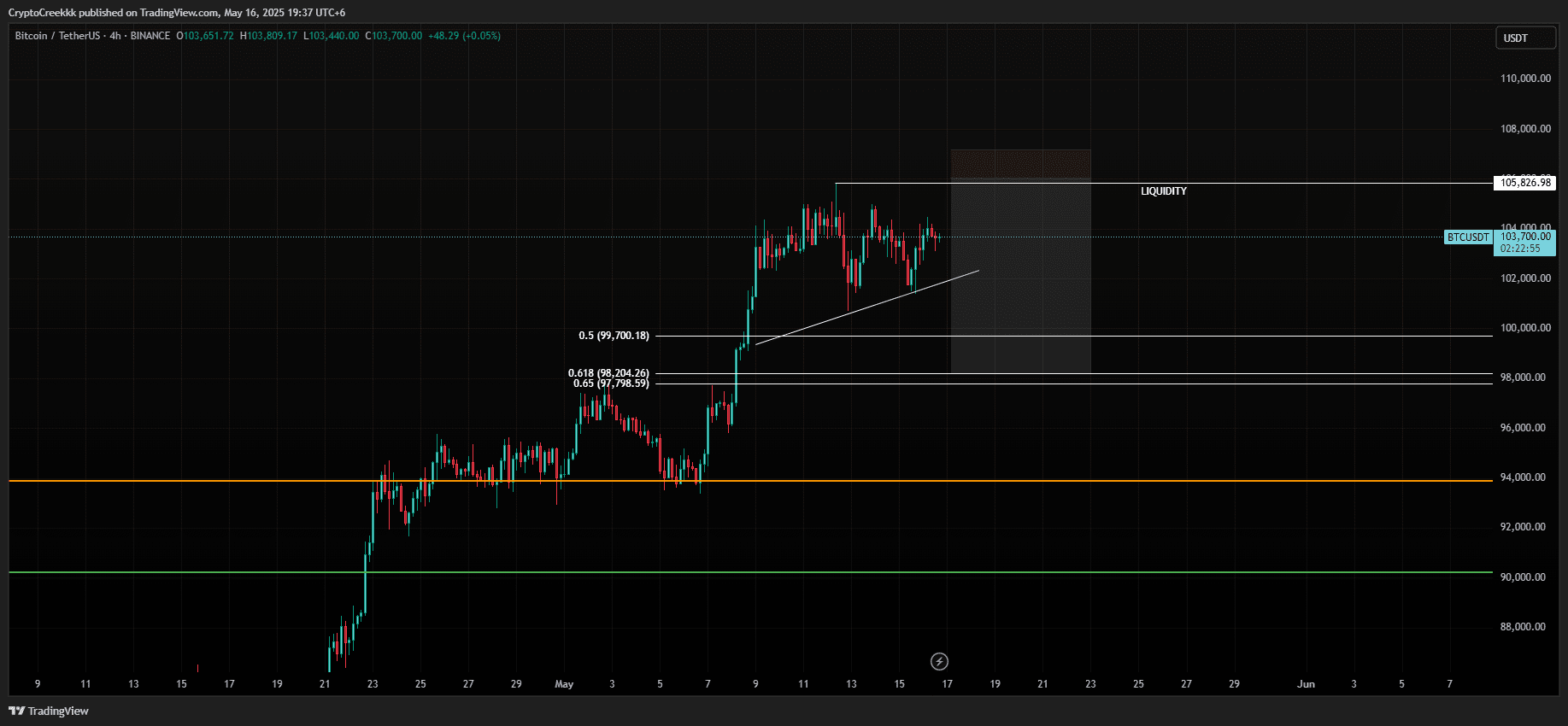 Possiamo vedere che BTC sta attualmente consolidando e mantenendo la sua struttura piuttosto bene. Ma le persone sono pronte per una rottura. I rivenditori vogliono scambiare la rottura e io voglio vendere loro. Quando BTC supererà il suo recente massimo, che è un buon livello di liquidità, vedremo molto probabilmente una correzione netta verso 97k fino alla zona d'oro.