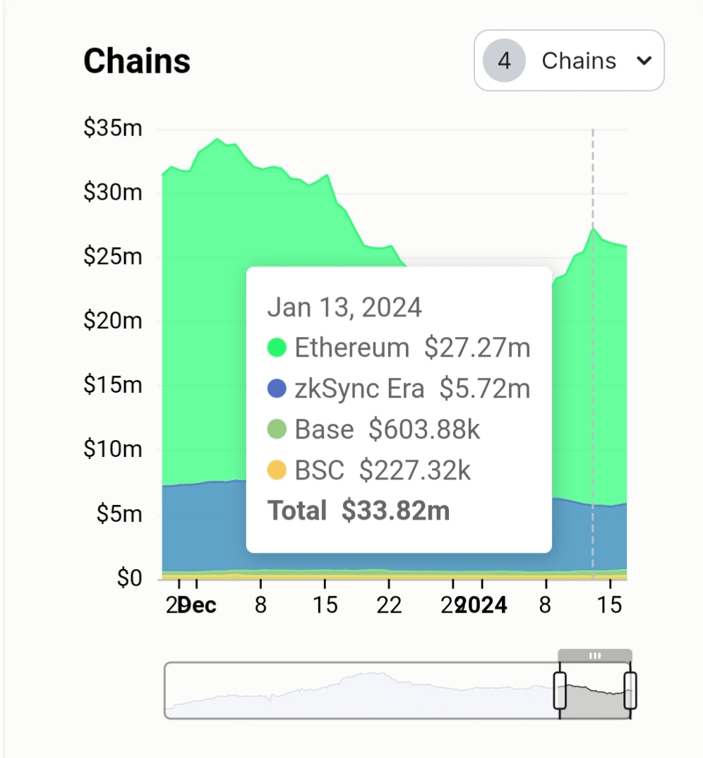 Il rapporto capitalizzazione di mercato/TVL è un parametro utilizzato da molti utenti per trovare nuove gemme sottovalutate. Nell'agosto 2023 il rapporto Mcap/TVL del protocollo Maverick ha raggiunto più di 15 e ciò ha dato inizio a grandi vendite. Il loro TVL ora si aggira intorno ai 35 milioni di dollari e il marketcap 120 milioni e guadagnano un rapporto di 3,58. Molti investitori si sono nuovamente interessati e abbiamo visto nuovi portafogli accumulare $ MAV