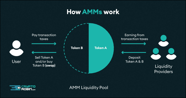 L'AMM è un modo per scambiare criptovalute senza intermediari. Puoi scambiare una moneta con un'altra utilizzando un pool di monete che altre persone hanno inserito. Il prezzo delle monete dipende da quante persone vogliono acquistarle o venderle. Paghi una piccola commissione per ogni scambio e le persone che inseriscono le monete ricevono una parte delle commissioni.