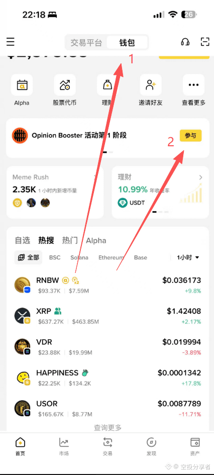 不多BB了上教程!让小白也看得懂那种!!!可以网页,可以手机操作!首先打开APP点我标记的1,然后2参与点进去!
