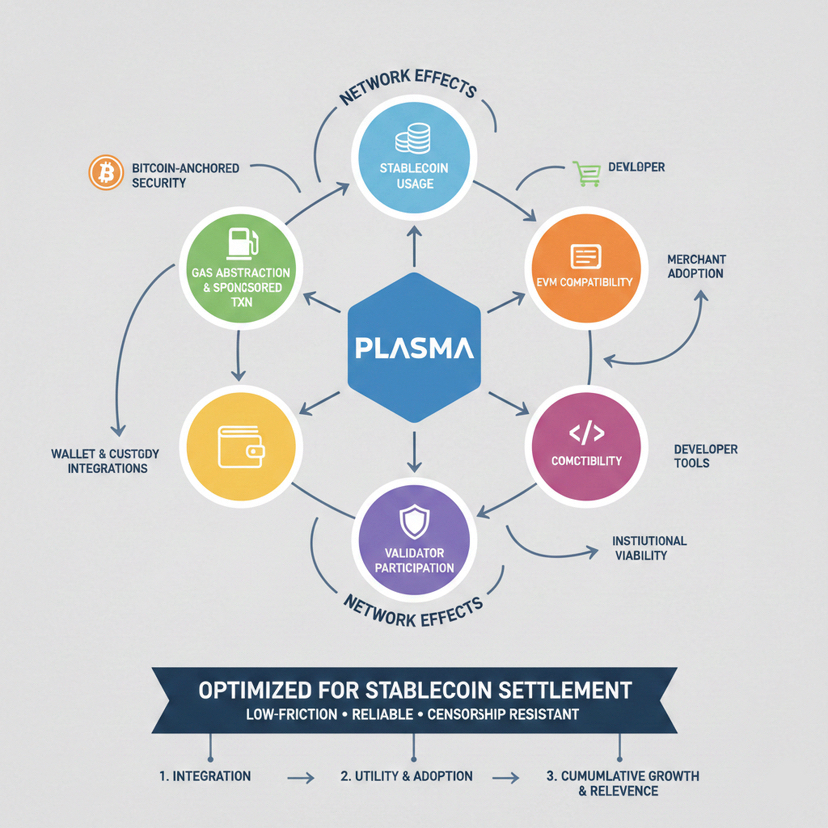 The more people use Plasma for stablecoins, the better it gets for everyone. When stores, digital wallets, and payment companies start using Plasma to move stablecoins, the whole network gets more useful. Every time someone new joins in, it makes the system reach even further.