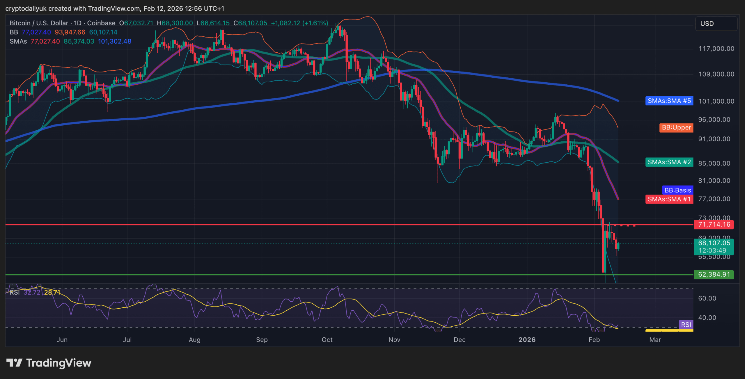 Il Bitcoin (BTC) è salito leggermente questo giovedì poiché il prezzo è aumentato un po' da $67,000 a $68,000.