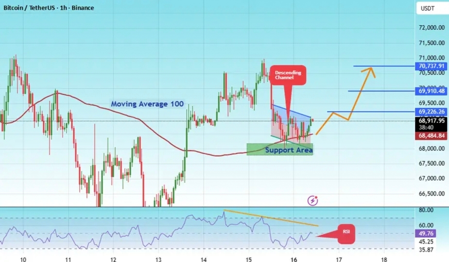 C'è una zona di supporto chiave in verde a 70737, e il prezzo è rimbalzato da questo livello diverse volte. Un altro rimbalzo è atteso.