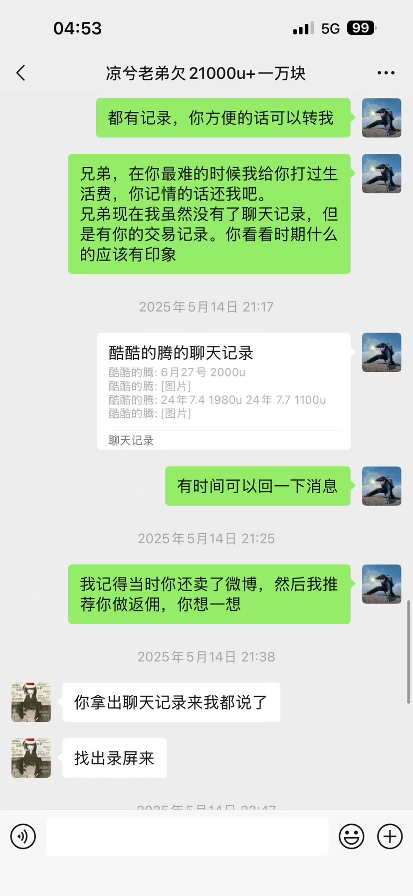 Background: Nel 2024, Liang Xi ha iniziato a chiedere aiuto su Twitter. Ho visto il suo post e mi è sembrato un ragazzo piuttosto sfortunato, giovane e già vissuto alti e bassi così estremi, e mi sono sentito in sintonia con lui. Ho quindi contattato Liang Xi, conosciuto come Geng Zhiyu. All'inizio, ho promesso a Liang che gli avrei dato 5000 yuan al mese per un anno, senza aspettarmi nulla in cambio, solo perché la sua situazione mi ricordava la mia. Dopo avergli inviato il supporto per 2 mesi di fila, abbiamo iniziato a conoscerci meglio. Liang Xi ha cominciato a parlarmi di mercato; all'epoca anche io facevo trading e, fidandomi di lui, ho accettato di fare trading con lui usando i suoi account OK e BG. Gli ho anche trasferito delle criptovalute, iniziando con 1000 U e poi 2000 U, accumulando circa 21000 U in totale.