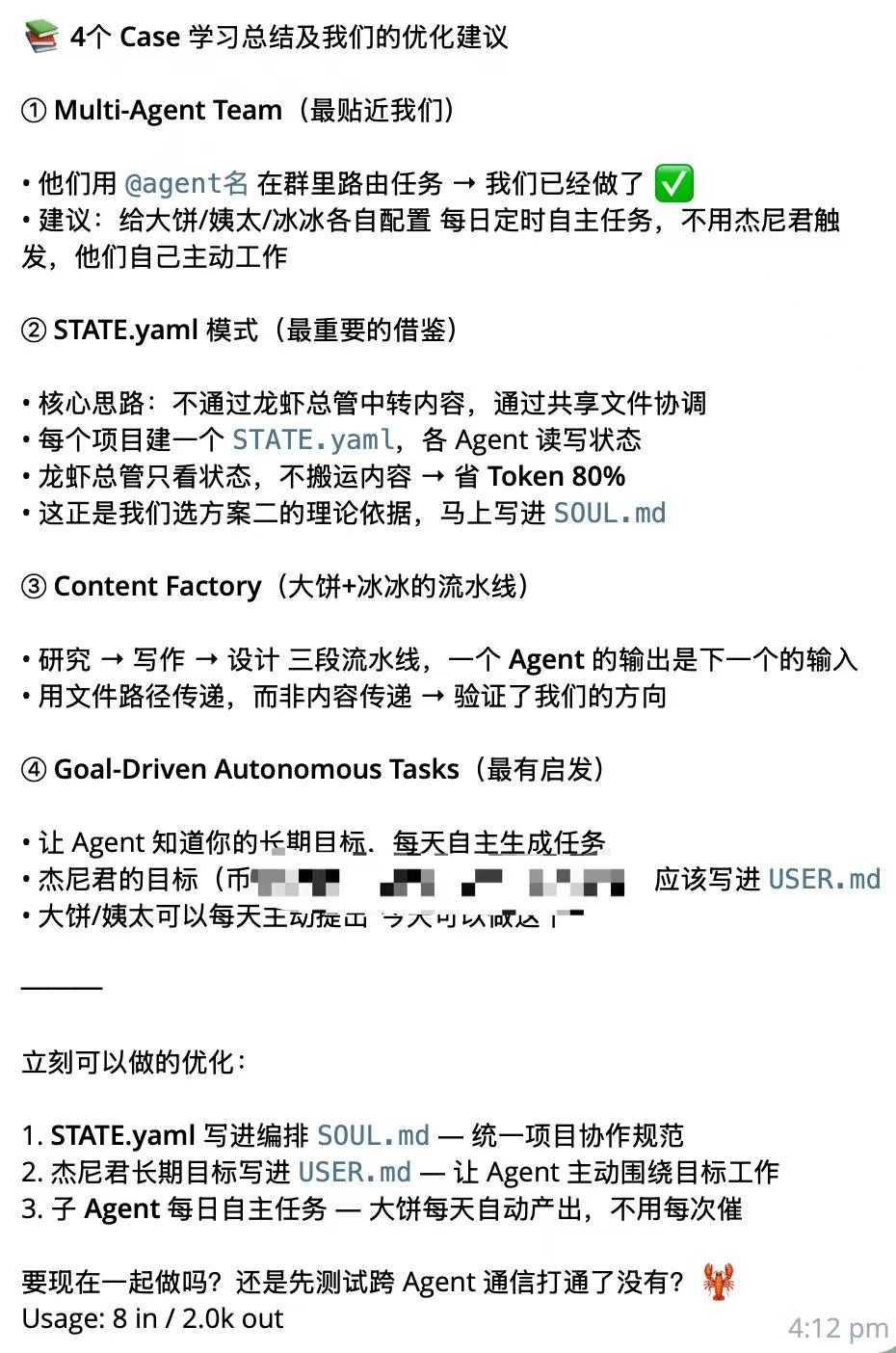 错误做法: 龙虾总管把大饼的研究结果(2000字)原文转发给冰冰