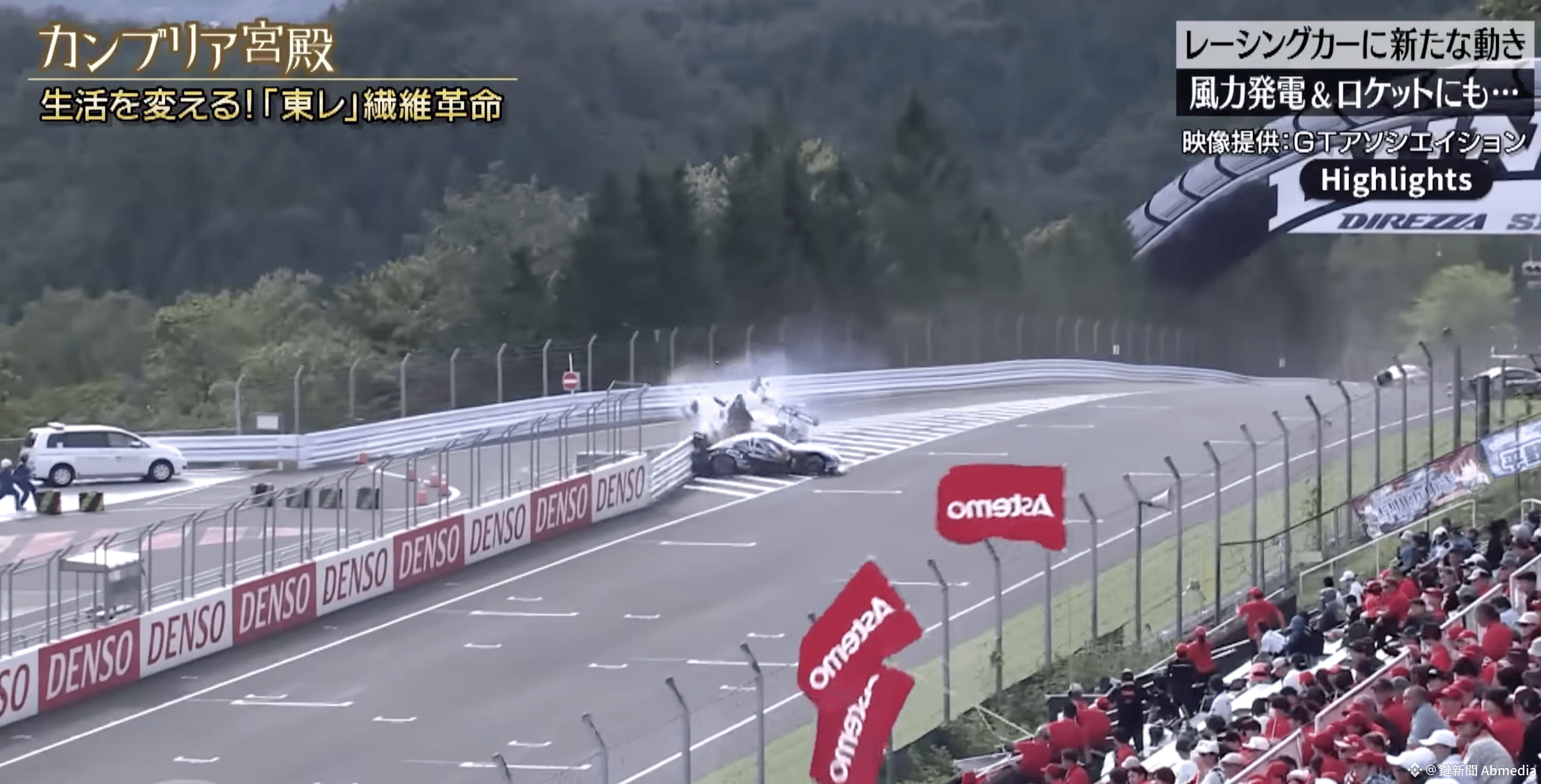 東麗的技術不只應用在服裝,研發的碳纖維已成為賽車、汽車與運動器材等產業不可或缺的材料,職業賽車從車體到駕駛座皆以碳纖維打造,碳纖維的韌性為鋼鐵的十倍,但重量僅為鋼鐵的四分之一,具備數倍強度,能在強烈撞擊中保護駕駛者,東麗的碳纖維技術讓許多車手發生事故後仍能安全走出車外。