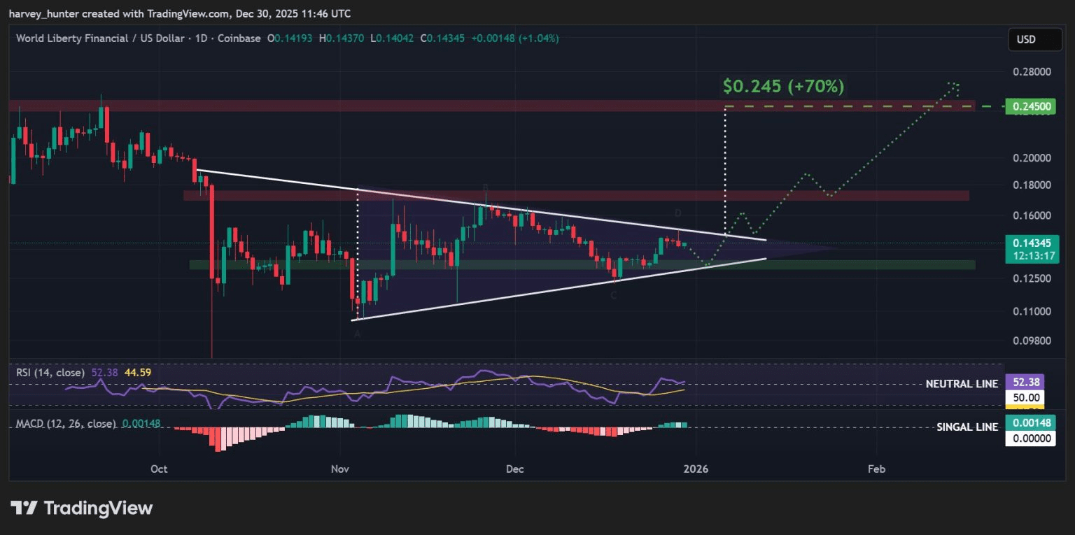 Se questa mossa funziona e la comunità vota a favore, gli analisti vedono WLFI rompere il suo attuale tetto. Stiamo osservando un modello di "triangolo simmetrico" nei grafici (un segnale tecnico che il prezzo sta prendendo fiato per saltare) e se rompe verso l'alto, potremmo vedere un rally del 70% cercando i $0.245. 🎯 Fondamentalmente, stanno usando il loro capitale per comprare il loro posto nel sistema finanziario globale, sfruttando l'impulso della famiglia Trump e alleanze con giganti come BitGo per garantire sicurezza.
