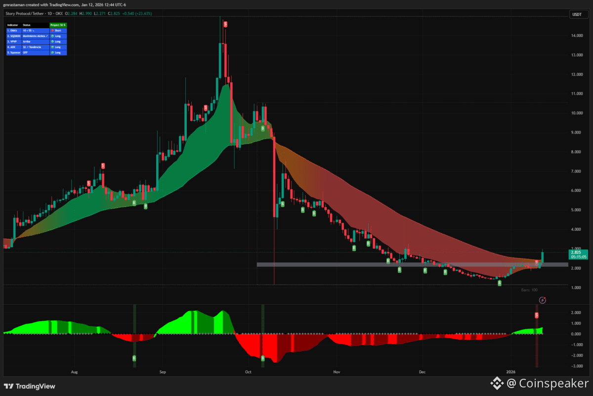 From a technical perspective, the daily chart shows IP breaking out of a prolonged downtrend. The token’s price has crossed above its moving averages, signaling potential trend reversal momentum. The RSI indicator has surged into positive territory after spending months in oversold conditions, reflecting renewed buying pressure. This technical breakout, combined with the price reclaiming the $2.50 support level that held during December 2025, suggests growing momentum, though traders should watch for confirmation of sustained volume above key resistance levels.
