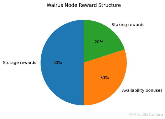 Структура стимулів для нод включає кілька компонентів. По-перше, базова винагорода за зберігання даних. Коли користувач завантажує файл у мережу @walrusprotocol, він платить токенами $WAL, які розподіляються між нодами, що зберігають фрагменти цього файлу. Розмір винагороди залежить від обсягу даних, тривалості зберігання та поточного попиту на ресурси мережі. По-друге, винагорода за доступність. Ноди, які забезпечують високу швидкість відповіді та надійність доступу до даних, отримують додаткові бонуси через механізм репутації. Це стимулює операторів підтримувати високу якість сервісу, а не просто зберігати дані офлайн.