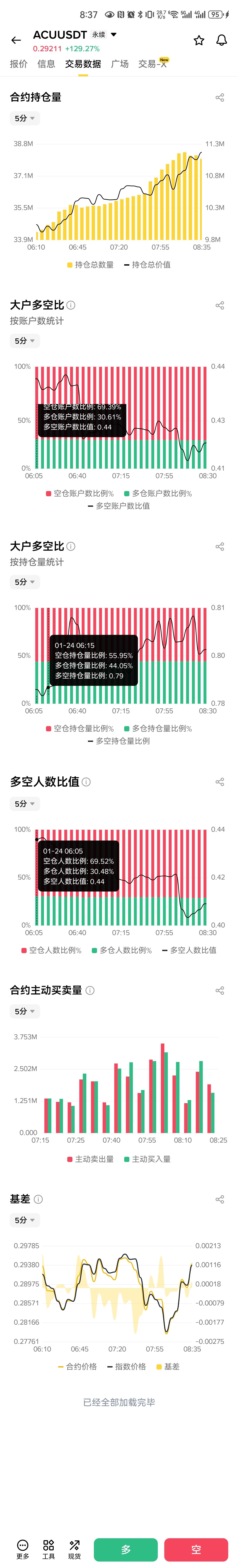 Attualmente: la barra grigia è fondamentalmente sopra 0, e con l'aumento del prezzo, il premio è ampliato a circa 0,002 USDT (circa 0,7% rispetto a un prezzo di 0,29), l'emozione rialzista è alta.