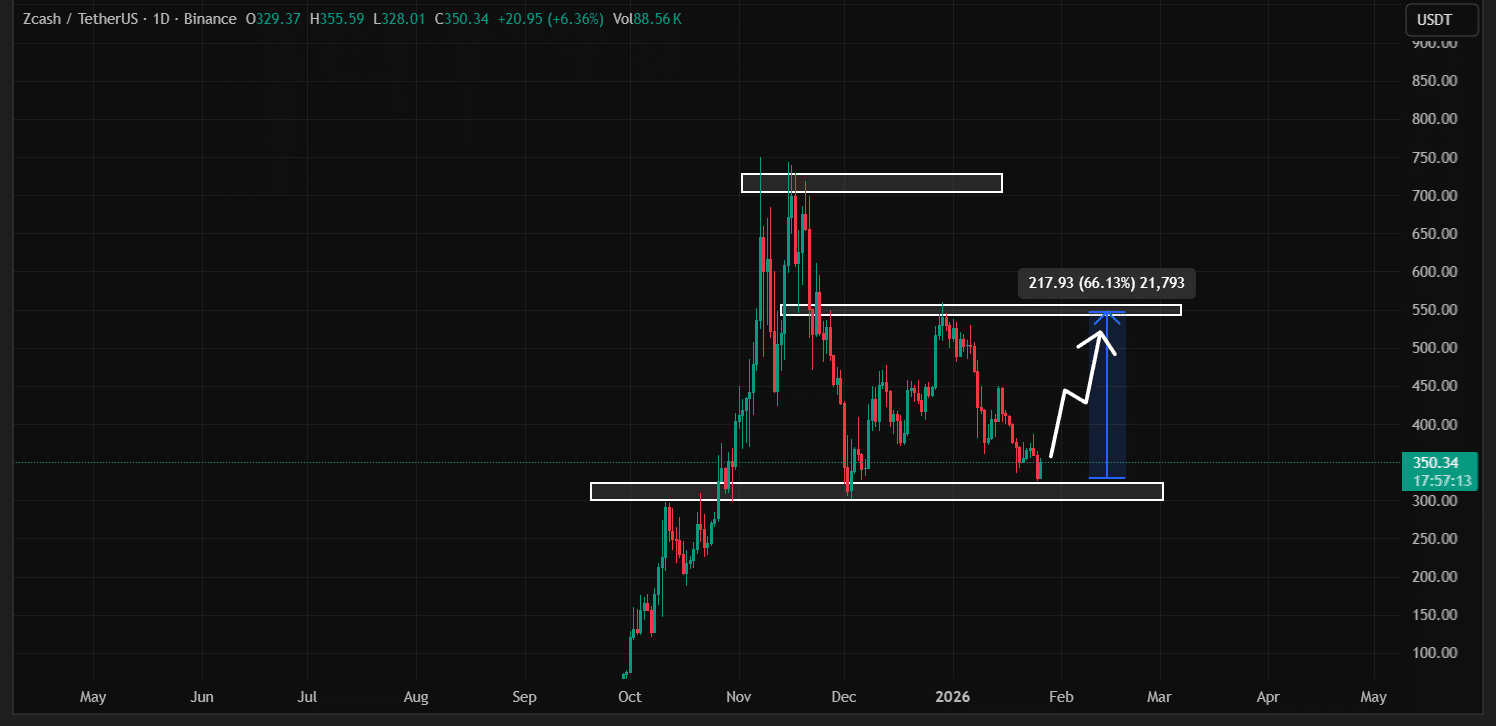 Secondo voi, $ZEC volerà di nuovo al 60% o romperà il supporto a 320 per tornare nel profondo?
