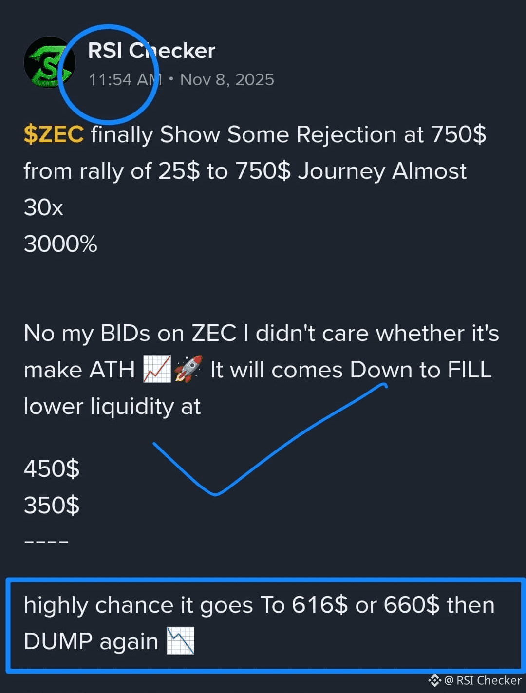 On 8th November 2025 I told that On 1Day time frame ZEC become bearish now after decent retracment towards 660$ to 690$ and share my bids that soon we see ZEC price at 450$ and 350$