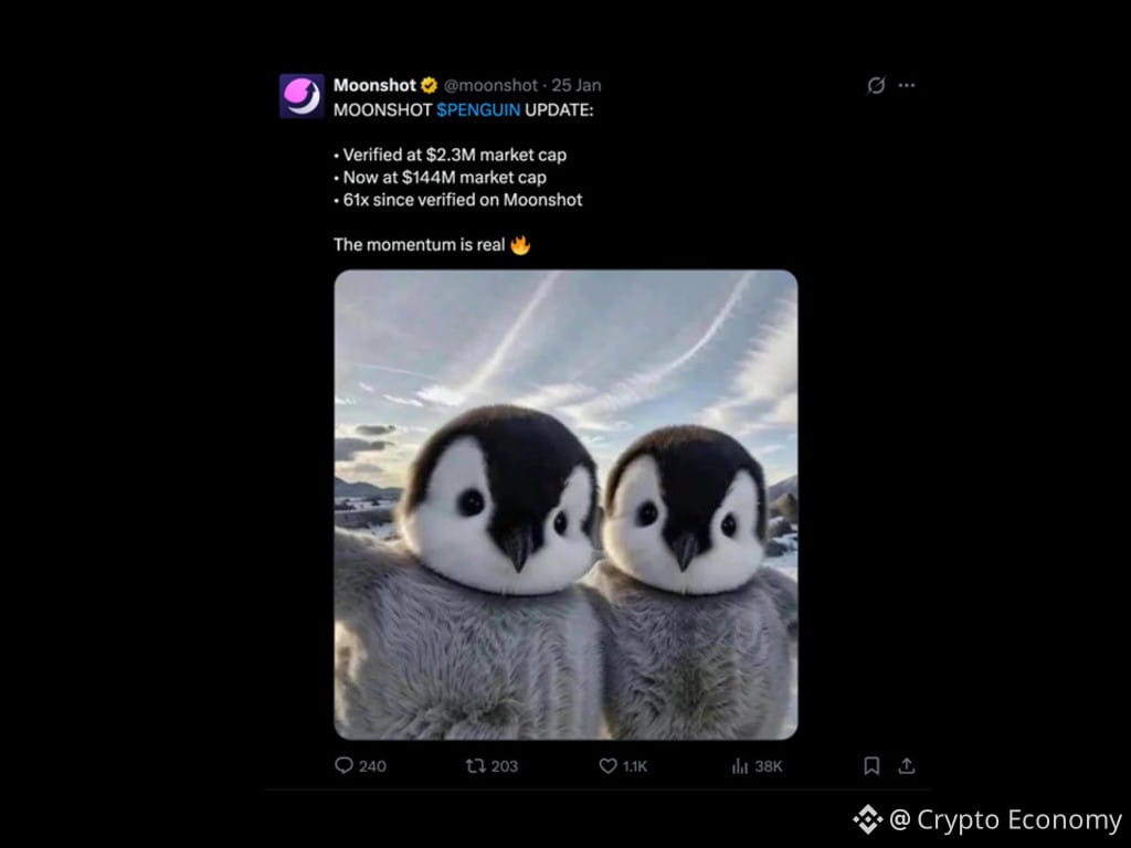 $PENGUIN has been one of the more visible Solana memecoin launches since 2025. After Moonshot verification, its market capitalization increased from an early-stage level into a substantially higher range within a short period.