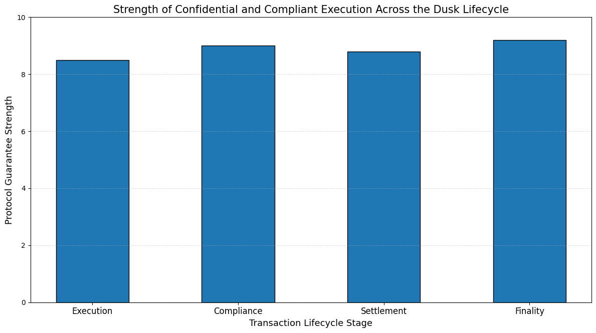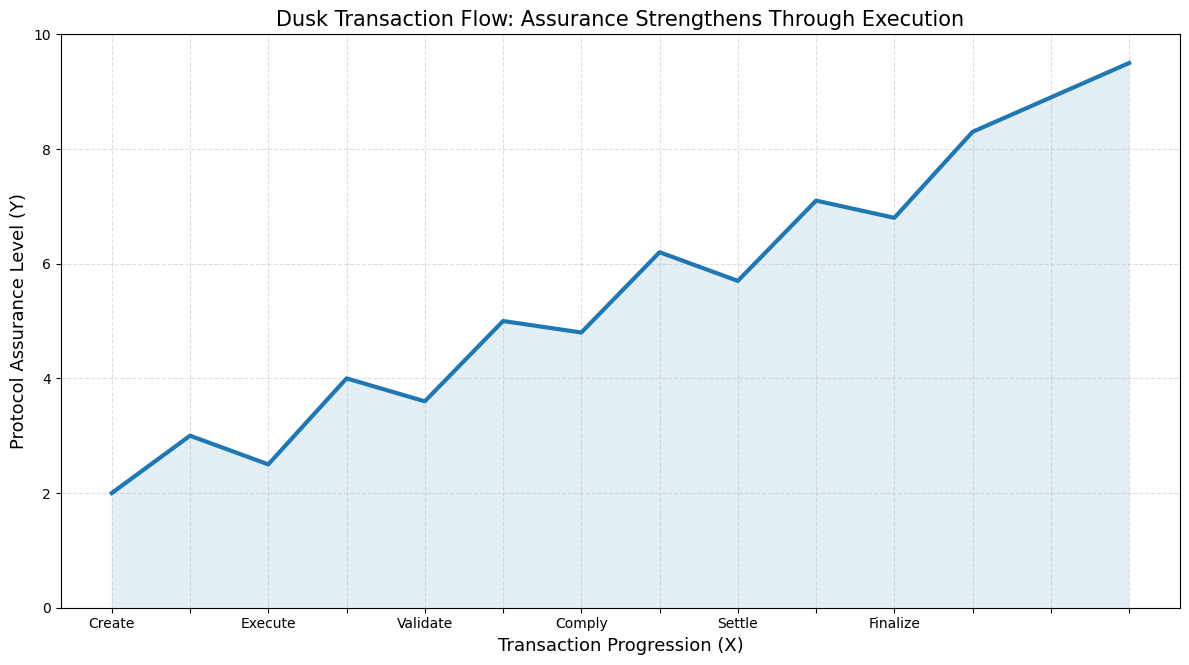 La finanza regolamentata non può tuttavia essere semplicemente svolta in modo riservato. L'applicazione della privacy porta a incertezze e non fiducia. Questo è risolto da Dusk dando alla conformità un posto nella validità della transazione. I termini normativi, come i requisiti di idoneità, i limiti di trasferimento e i limiti giurisdizionali, sono considerati nel processo di esecuzione stesso. Il mancato rispetto delle condizioni richiede l'invalidità della transazione, e non viene implementata. Manca di uno strato di revisione post-esecuzione e non ha bisogno di intermediari off-chain per imporre regolamenti post hoc.