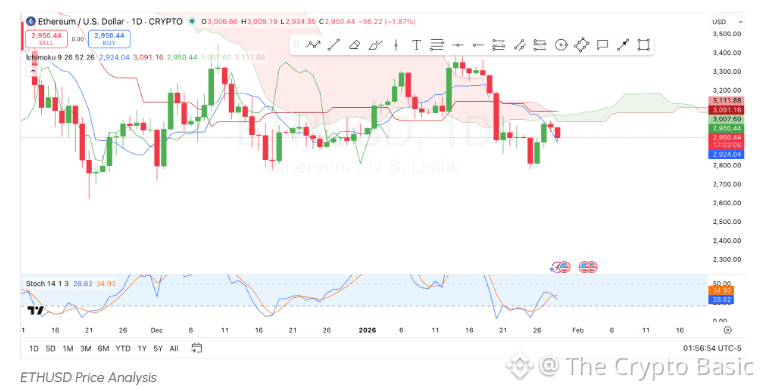 Looking at technical charts, Ethereum is currently trading below the Ichimoku Cloud. For Ethereum to initiate an upward move, it must break above the cloud, which starts at $3,091.
