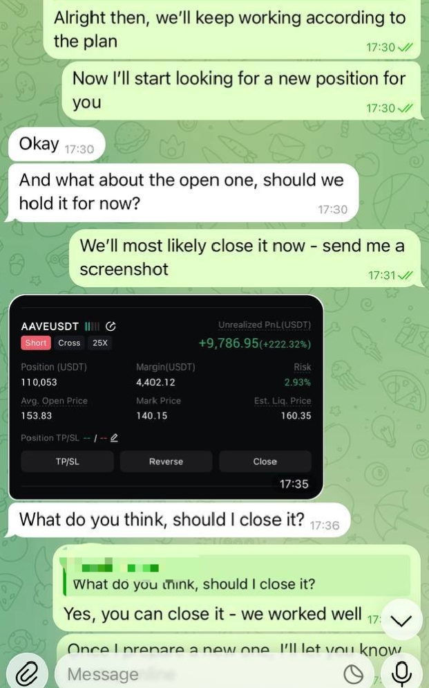 La maggior parte del tempo, sono conversazioni calme, decisioni chiare e pazienza. Questo scambio è un perfetto esempio di come si costruisce la coerenza: non attraverso l'eccitazione, ma attraverso la struttura e la fiducia nel piano.