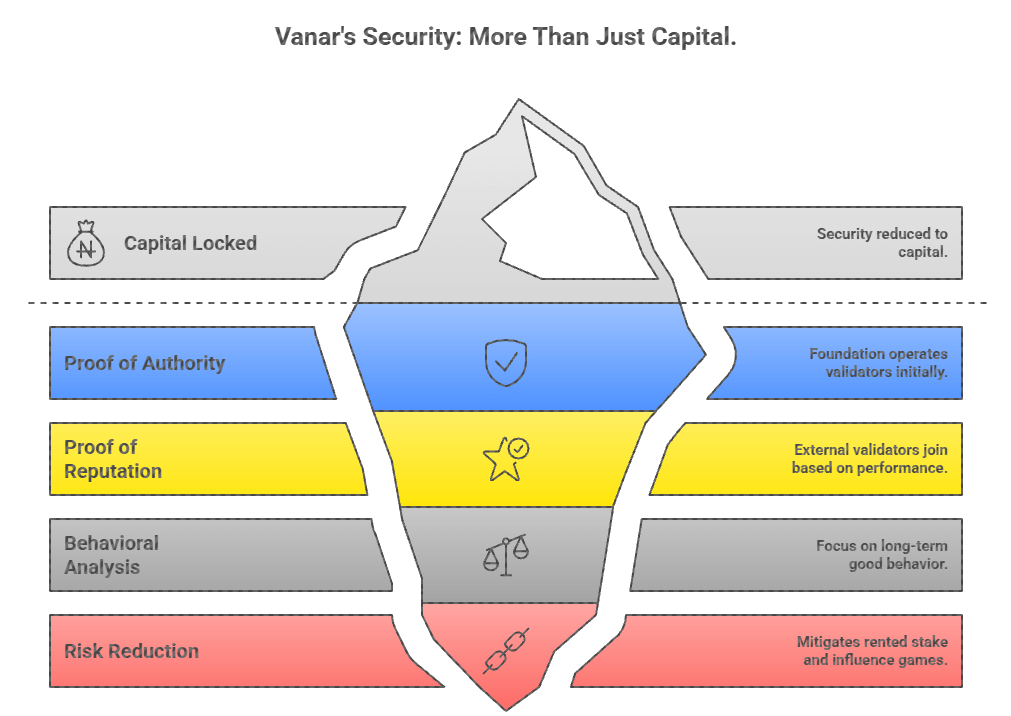 La maggior parte delle catene riduce la sicurezza a una sola cosa. Capitale bloccato. Chi ha più soldi vince influenza. Vanar rifiuta questo come unico segnale. Invece, combina la Proof of Authority con la Proof of Reputation.
