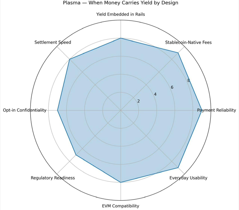 La caratteristica più rivelatrice in questo contesto è come Plasma si approccia all'interesse e al rendimento—non come un gancio di marketing, ma come una conseguenza di infrastrutture programmabili. Quando il denaro si muove e si regola all'interno di un sistema progettato per l'efficienza, la liquidità e l'uso continuo, l'idea di saldi inattivi inizia a erodersi. Il rendimento smette di essere qualcosa che devi attivamente inseguire e diventa qualcosa che può emergere naturalmente dalla partecipazione.