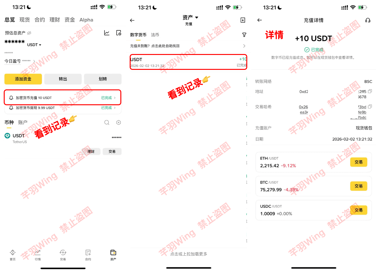 11、torna su Binance, scopri che ci sono informazioni di deposito e che il deposito è riuscito, questa è l'efficienza della catena di Binance!!!