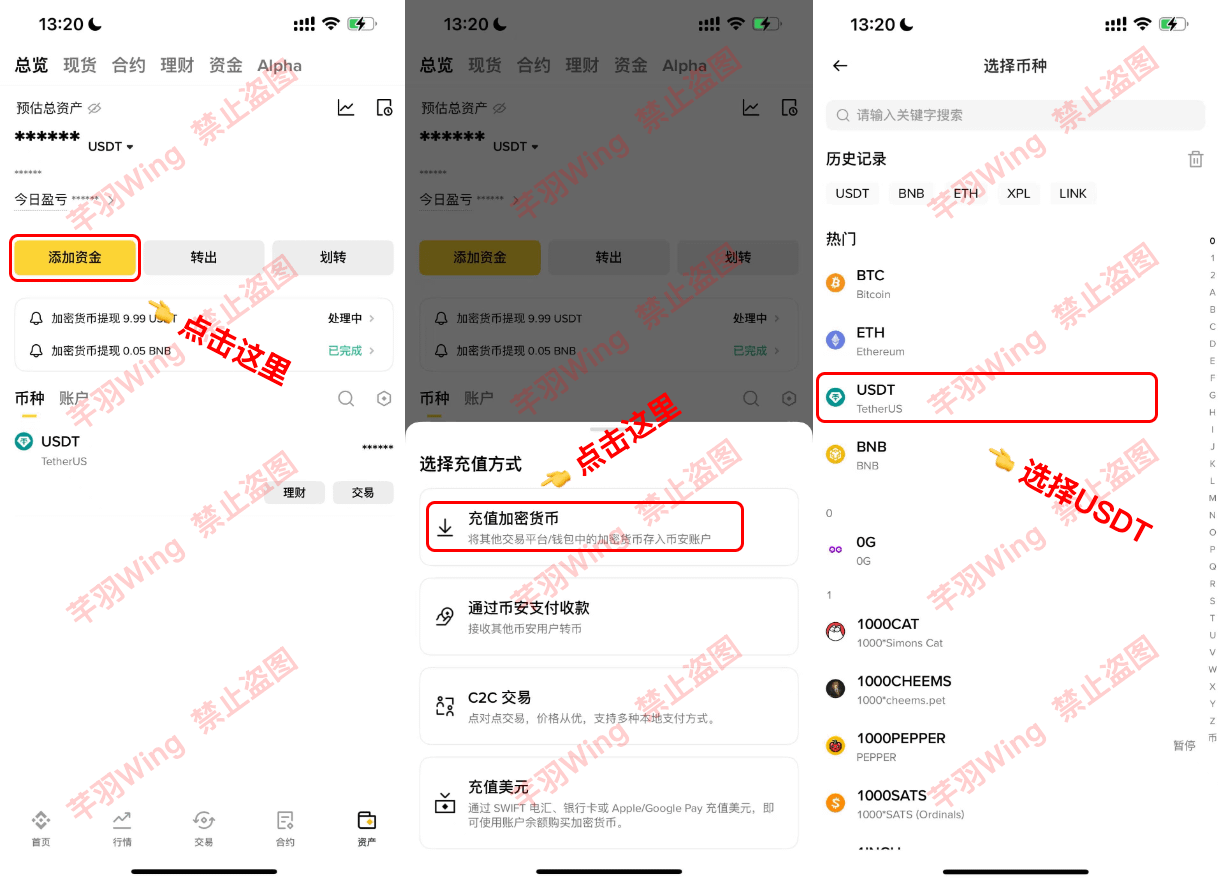 Qui prendiamo USDT come esempio, continuiamo a usare il portafoglio di prima