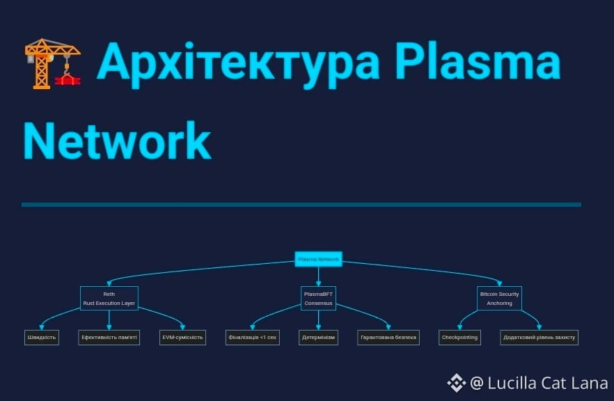 Спробую пояснити технічні штуки простими словами. Reth — це двигун блокчейну, написаний мовою Rust. Уявіть старий холодильник, який працює, але їсть багато електрики і шумить. Reth — це новий холодильник класу A+++: швидший, менше споживає, займає менше пам'яті. Звучить нудно, поки не прийде рахунок за електрику. А PlasmaBFT — це консенсус, правила прийняття рішень. У старих блокчейнах це як кидати монетку 10 разів і сподіватись. А тут — проголосували, більшість за, рішення прийнято за секунду. Детермінізм. Якщо підтверджено — підтверджено назавжди. Коли йдеться про гроші, це важливо. Ніхто не хоче надіслати $10,000 і три години гризти нігті, чи точно транзакція пройшла.