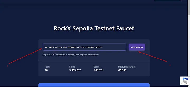 Visita https://faucet-sepolia.rockx.com e collega il portafoglio;