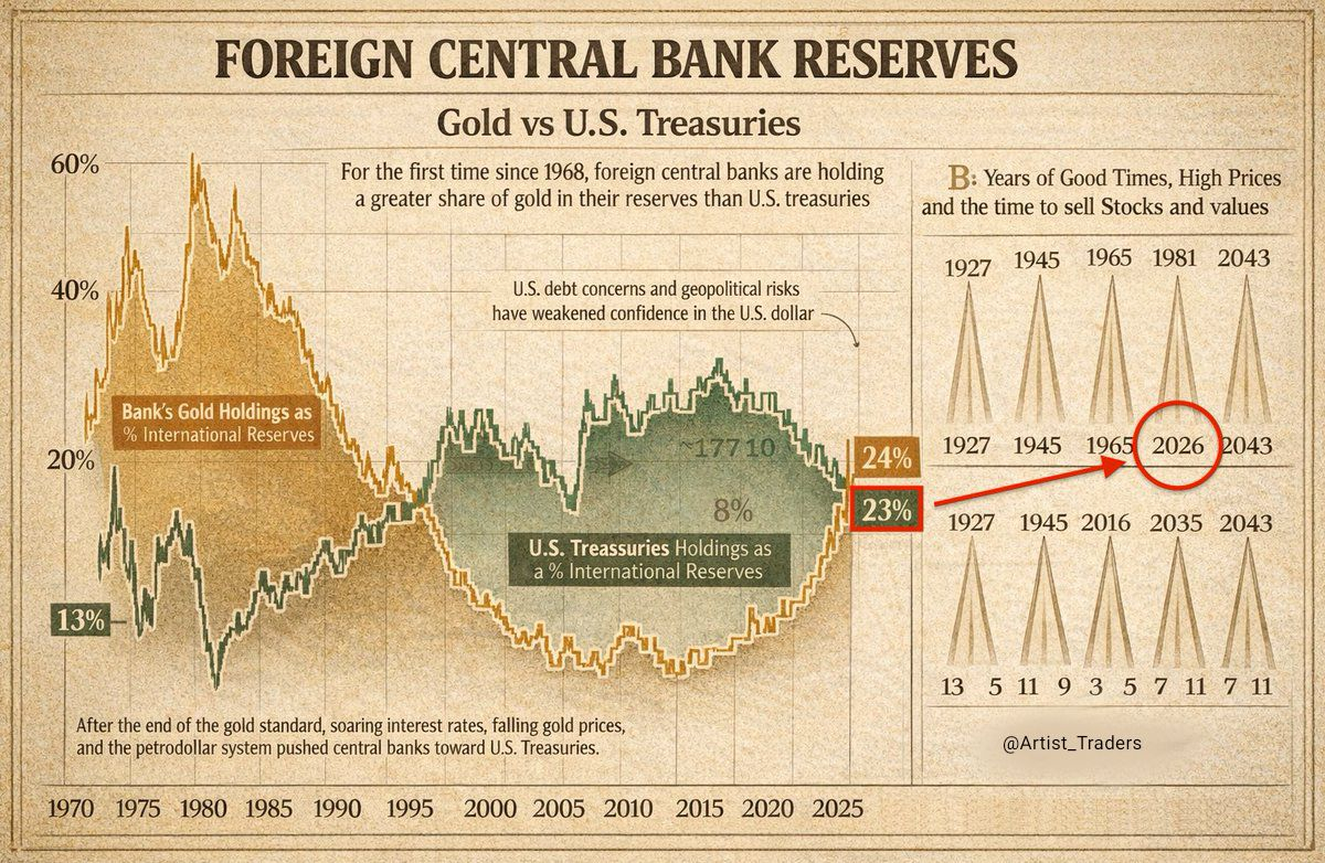 Per la prima volta in 60 anni, le banche centrali detengono più oro che Treasury statunitensi. $XAU