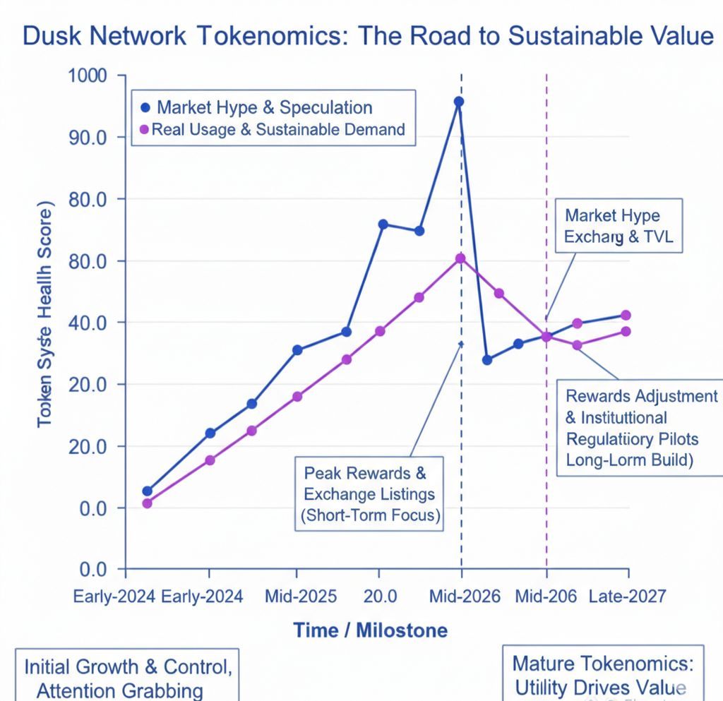 Alla fine, tutti i modelli e i grafici possono distrarci da una semplice verità: un token blockchain sopravvive solo quando risolve un problema reale per persone reali. Le ricompense possono aiutare a far partire il motore, ma non possono guidare l'auto per sempre. Il futuro della tokenomica di Dusk dipende dal fatto che la rete diventi genuinamente utile nella vita aziendale.
