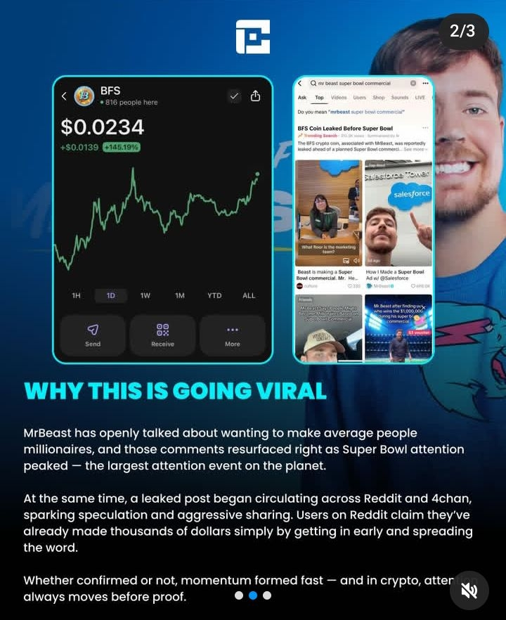 Tuttavia, è fondamentale separare l'hype dai fatti. Nonostante tutta la speculazione, MrBeast stesso non ha confermato pubblicamente alcun legame con la moneta BSF/BFS — e il suo team ha ribadito che non esiste alcuna criptovaluta ufficiale di MrBeast lanciata da lui fino ad oggi. �