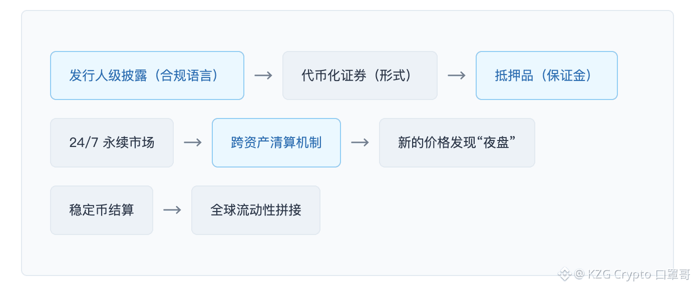 更深一层:RWA 的难点从来不在“把资产上链”,而在“让资产在链上被交易、被清算、被风控”。Ondo正在做的是把这三层同时打通:披露(合规语言)+抵押(资产形式)+市场(24/7杠杆)。