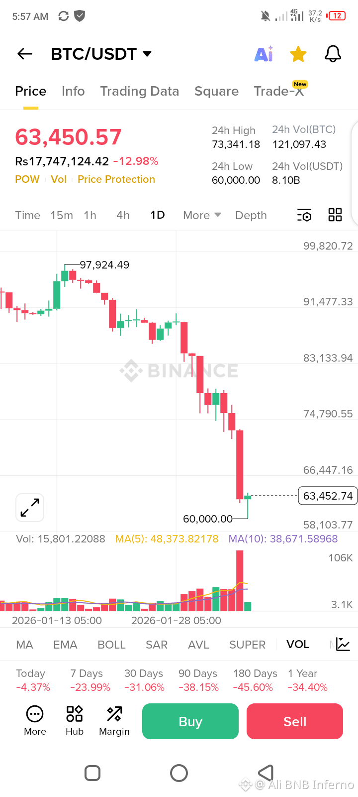At the current price near 63,000, Bitcoin is sitting in a fragile zone. There is no confirmed base yet. Any bounce from here must be treated as a relief rally until price reclaims 75,000. Below 60,000, the next visible demand zone lies closer to 55,000.