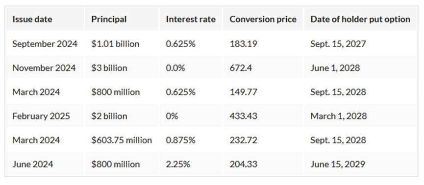 Questi 7,4 miliardi di obbligazioni convertibili, la prima scadenza è di 1 miliardo di dollari in scadenza il 15 settembre 2027, altri 6,4 miliardi potrebbero scadere nel 2028, aggiungendo gli interessi, arrivano a un totale di 8,2 miliardi di dollari.