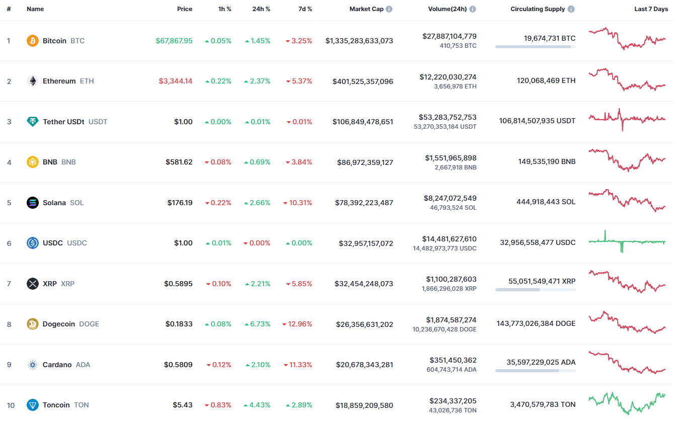Secondo CoinMarketCap, il fine settimana è iniziato con un rimbalzo del mercato.