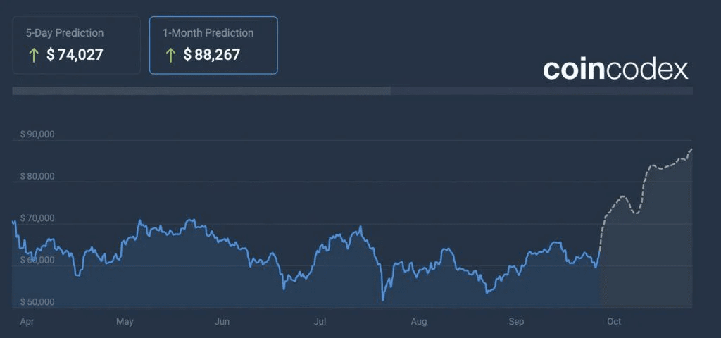 一方、changelly.com は独自の予測を発表している。10 月のビットコイン価格は 61,473 ドルから 76,664.73 ドルの間で推移すると予測している。11 月はやや下落し、価格は 58,138.52 ドルから 77,133.95 ドルの範囲になると予測している。12 月はより安定すると予測されるものの、61,097.32 ドルから 63,022.10 ドルの範囲で下落する見込みだ。これらの数字は、近い将来に成長と安定の両方の可能性を示唆している。