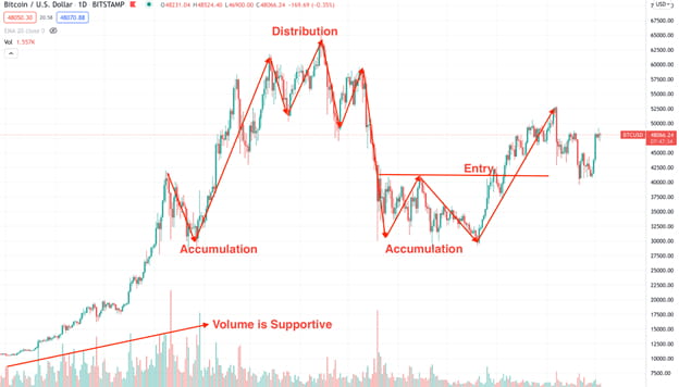 暗号通貨市場でダウ理論を適用する方法: 蓄積と分配