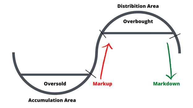 分配: この段階では、先発者はトレンドの勢いが衰え、取引を終了する時期が近づいていることに気づきます。したがって、先発者がポジションをクローズすると、市場は最終的に反転します。