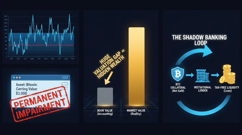 2026年の"シャドウバンキング"システムでは、大手プレイヤーはBTCを売却しません。彼らはそれに対して借ります。過去数年の減損により"簿価"が非常に低いため、彼らが得るローン・トゥ・バリュー(LTV)比率は数学的に狂っています。彼らは技術的に税務申告書には存在しない資産から"税金無料の現金"を引き出しています。