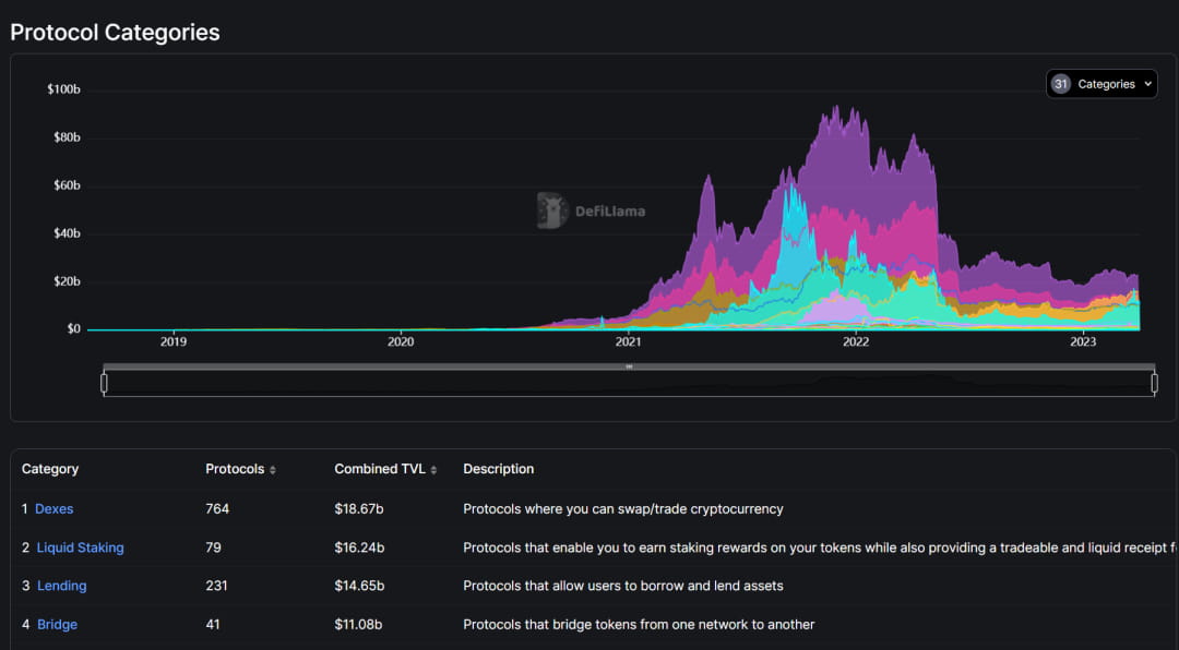 defillamaのデータによると、現時点でリキッドステーキングに預けられた暗号資産の総額は162億米ドルで、2番目に大きい暗号セクターとなっている。