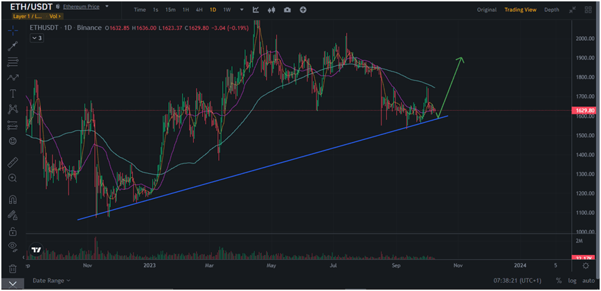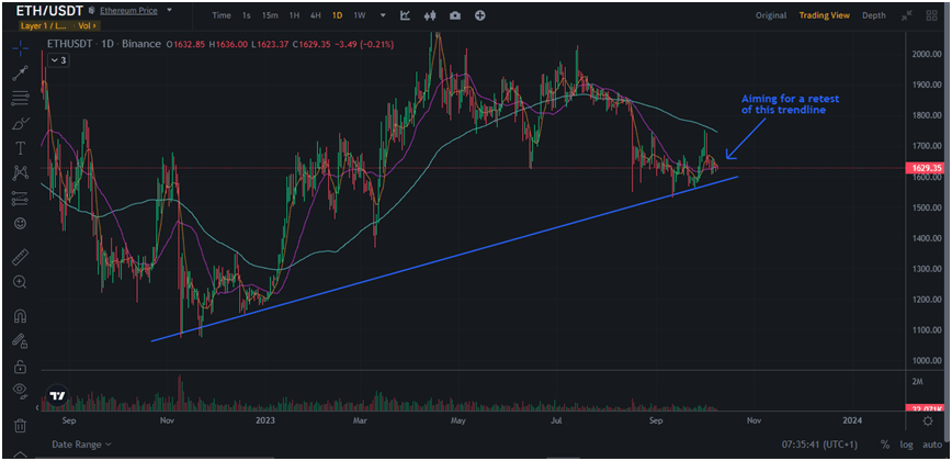If Ethereum hits this trendline and manages to rebound, we are bound to see an explosive price movement, with nothing stopping ETH from retaking $2,000.