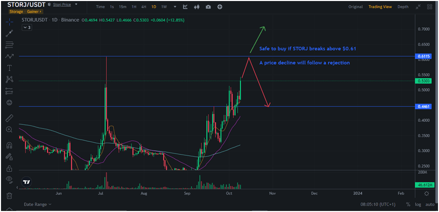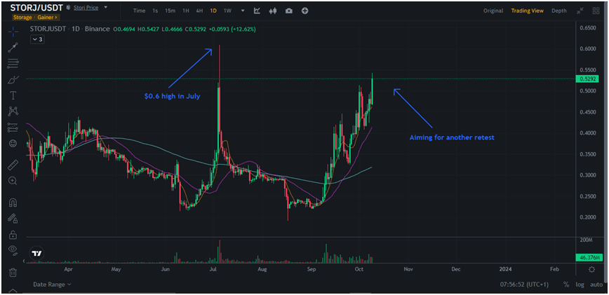 Storj is also one of the most bullish cryptocurrencies on Binance, with a 15% gain over the last day.