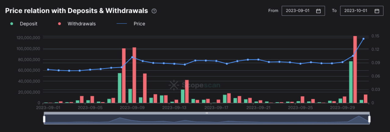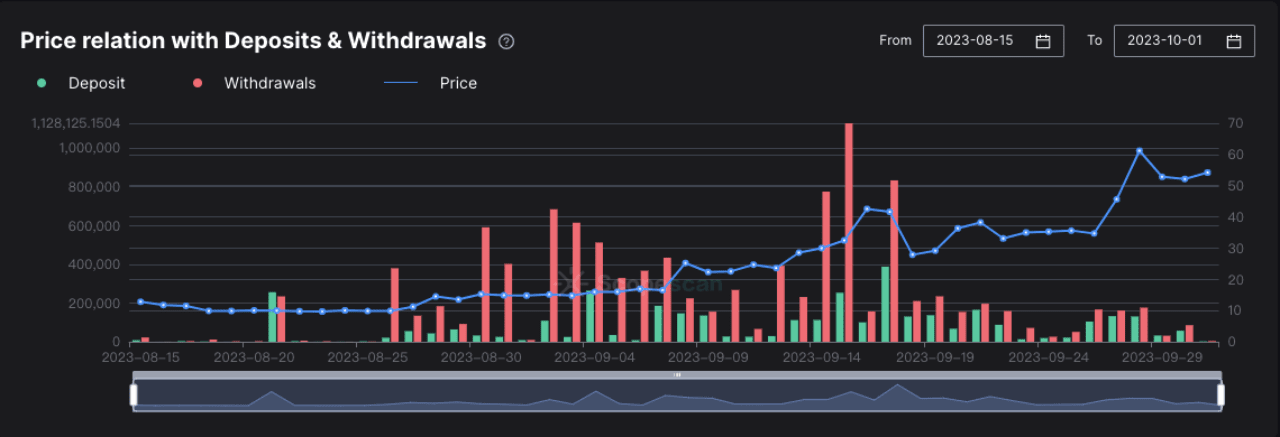 1. Przed pull-upem 28 września codziennie następowały wypływy. Po pull-upie odpływ tokenów wzrósł, co wskazuje, że rynek będzie kontynuowany w przyszłości.