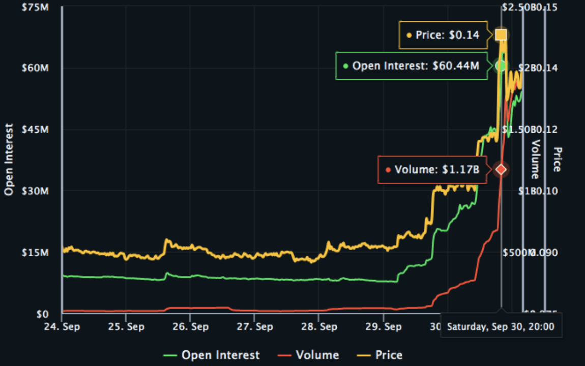 3. Dane OI osiągnęły maksimum 60,44M o godzinie 20:00 w dniu 30 września, co stanowi 75% wartości rynku będącego w obiegu.